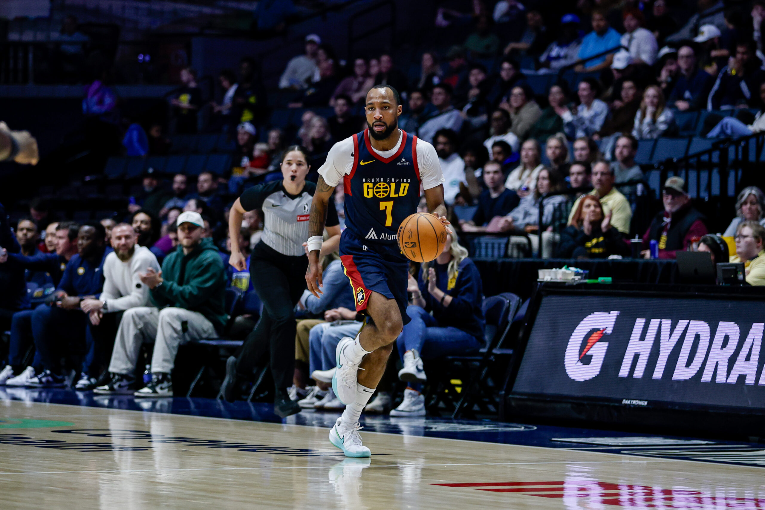 GRAND RAPIDS, Mich. (Nov. 16, 2025) – The Grand Rapids Gold (4-1) fell 122–117 to the Motor City Cruise (2-3) in a highly competitive matchup at Van Andel Arena. Neither team led by more than 11, and the game featured multiple swings before Motor City closed strong in the final minutes. The Gold continued its strong perimeter shooting, hitting 48.6% from three, and outscored the Cruise 19–5 on the fast break. The Gold also received significant production from their bench, totaling 38 points to Motor City’s 12.